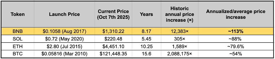 Key Insight: BNB’s compounding performance demonstrates how architecture and monetary structure can produce consistent value through self-correction. This leads to a more stable and predictable asset as the foundation to the architecture.