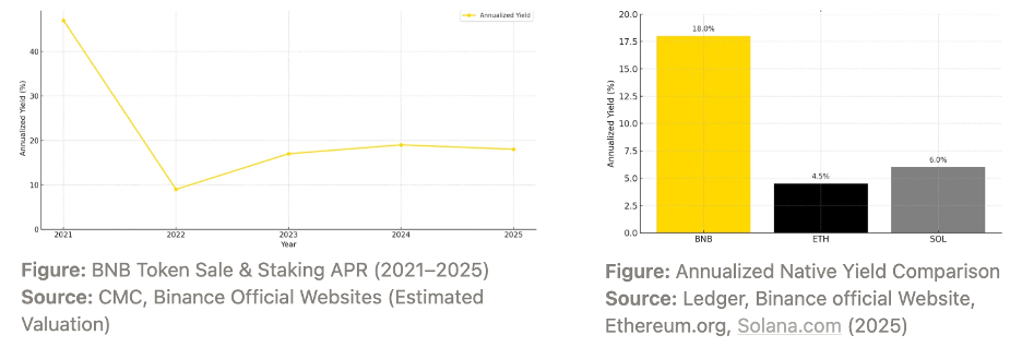 Figure 16 & 17: With 15–20% native annual value enhancement and deep ecosystem integration, we believe that BNB transforms standard asset holding into more efficient participation compared with others