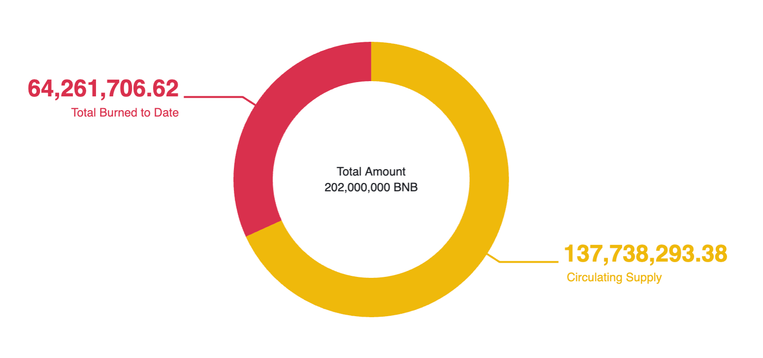 Figure 7: BNB’s programmatically self-balancing mechanism has removed 30%+ of total supply to date — burning an approximate total of $73.56 Billion worth of BNB to date