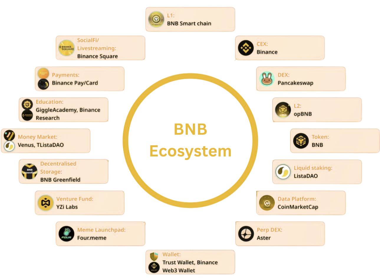 In short, the BNB Ecosystem, by integrating:
